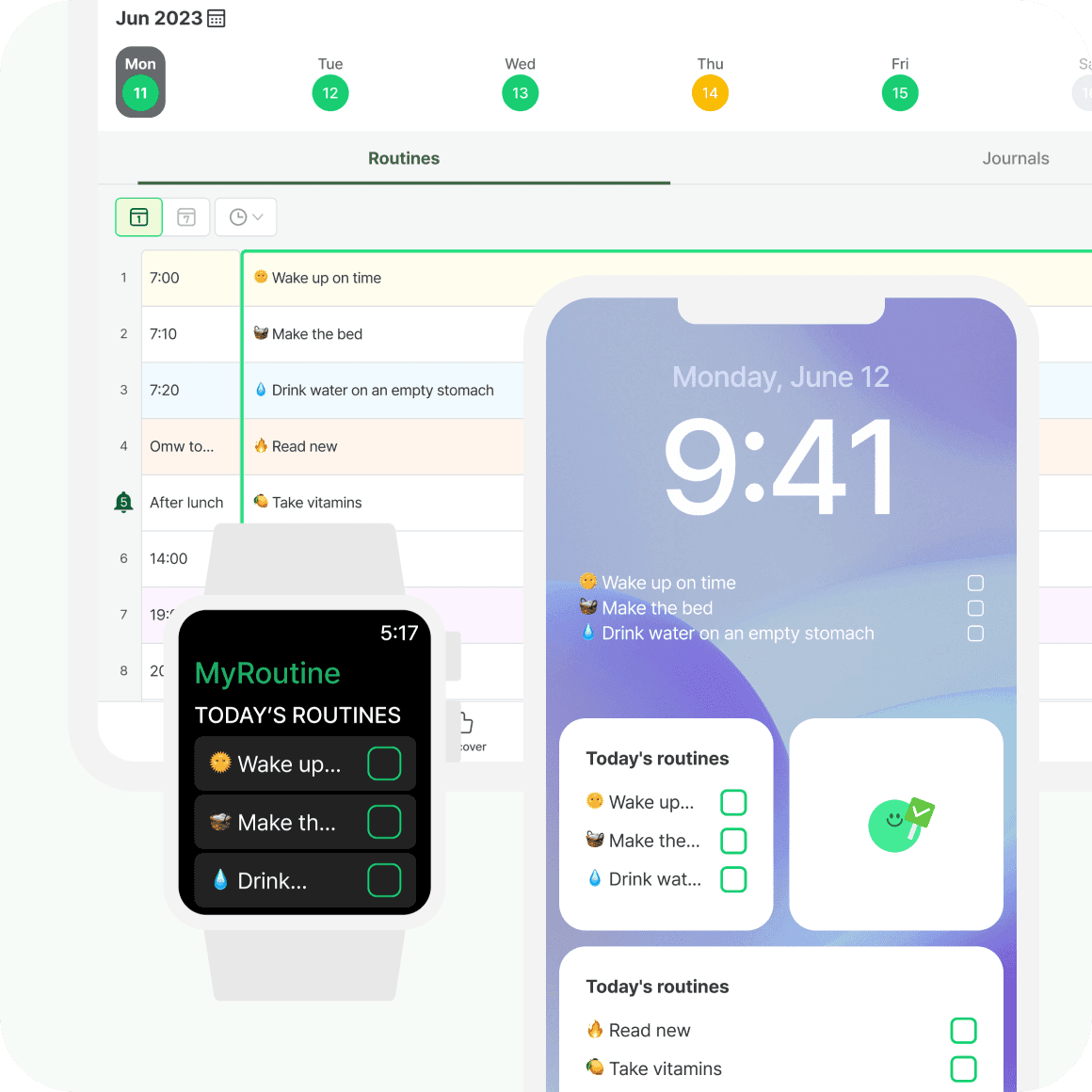 MyRoutineis a personalized habit tracker that helps you plan your routine, keep track of your daily tasks, and maintain a journal.